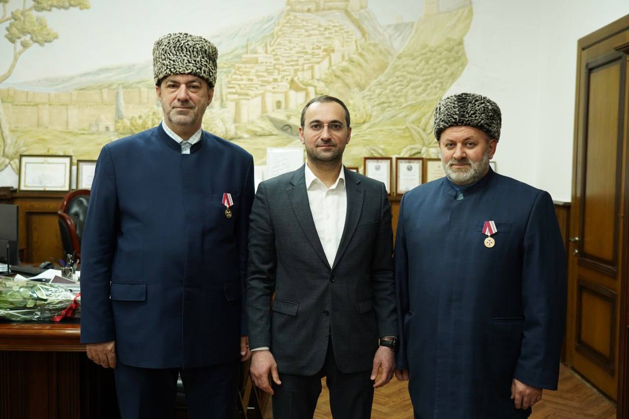 Сегодня, 26 марта, в администрации города мэр Дербента Рустамбек Пирмагомедов вручил медаль Росгвардии «За содействие» представителю управления мусульман Кавказа по Северному Кавказу Шагабитдину Керимову и руководителю Религиозной организации «Бабуль-Абваб» Ректору Исламского Университета им.Шейха Абдулла Афанди Саидову Арифу