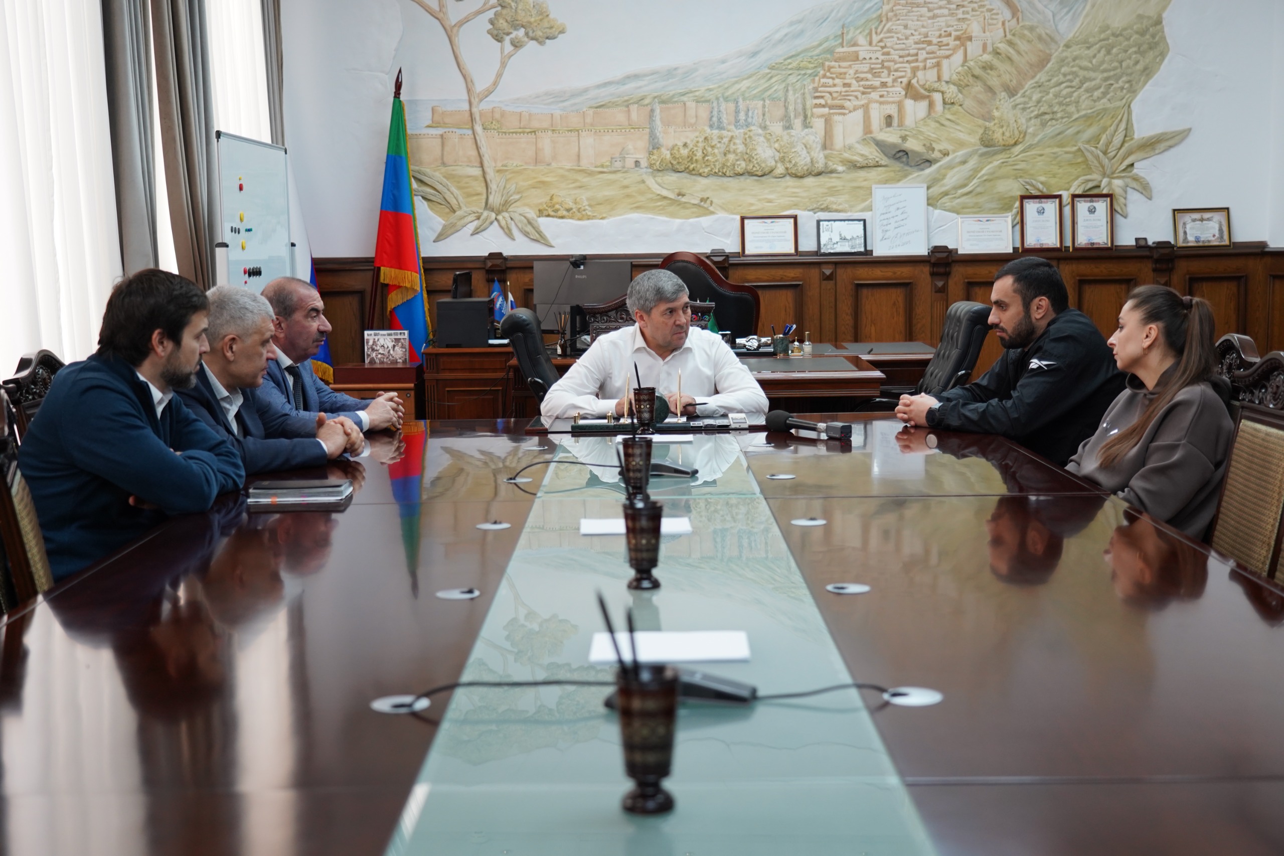 Во встрече также приняли участие председатель Собрания депутатов города Гасан Мирзоев, а также заместители главы администрации Видади Зейналов и Гаджиамин Рамалданов.