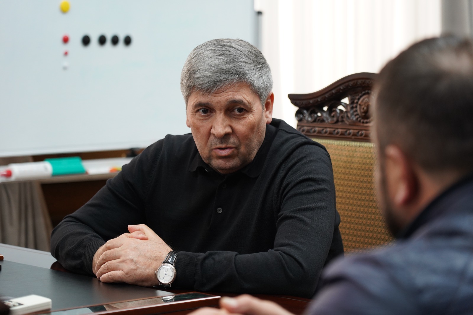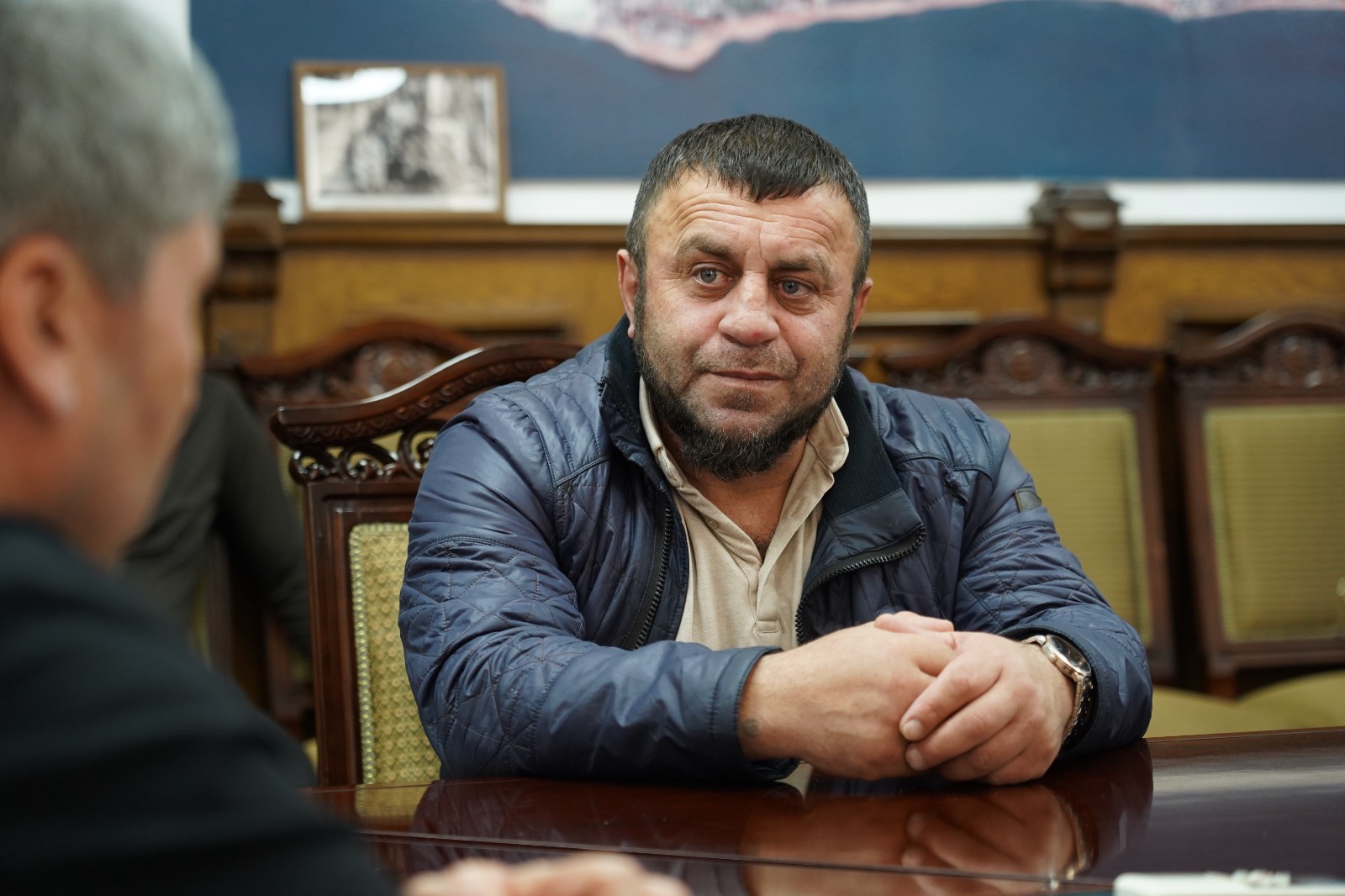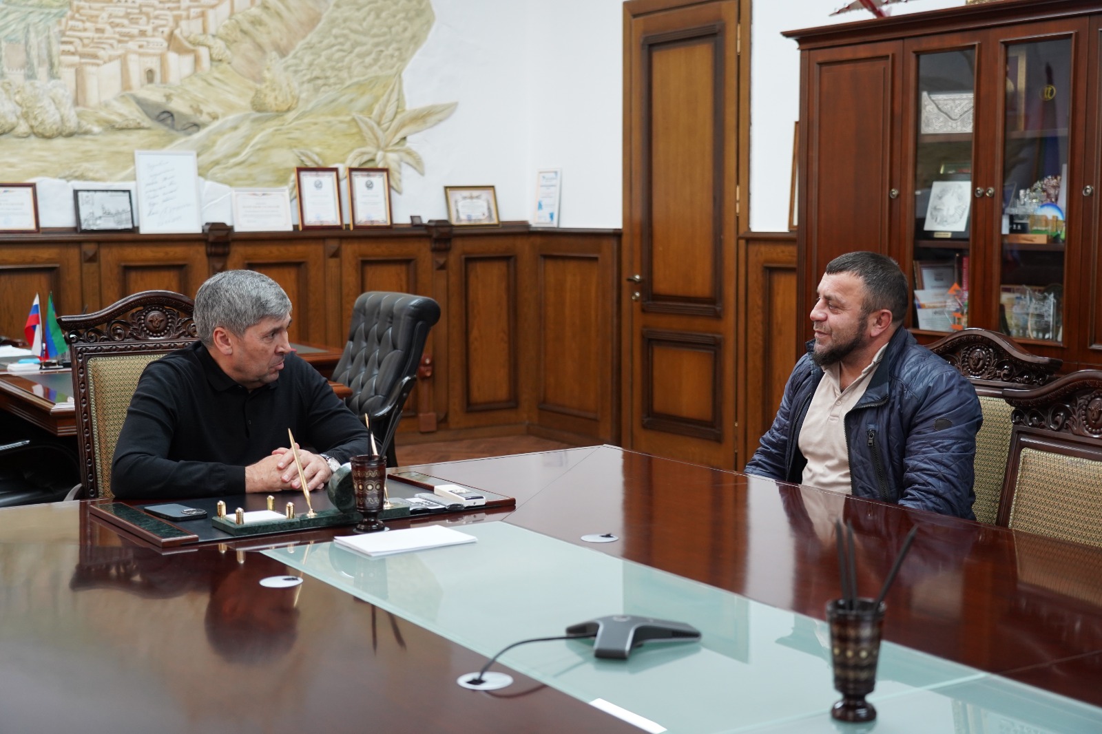 Сегодня, 20 ноября, в администрации Дербента состоялась встреча мэра города Ахмеда Кулиева с майором, участником специальной военной операции, Курбаном Гаджиевым.