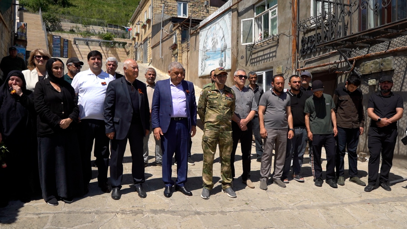 Почётное право открыть мемориальную плиту было предоставлено родной сестре Рустама Агаевича – Шарифе Сулеймановой и Гаджимураду Гаджимурадову.