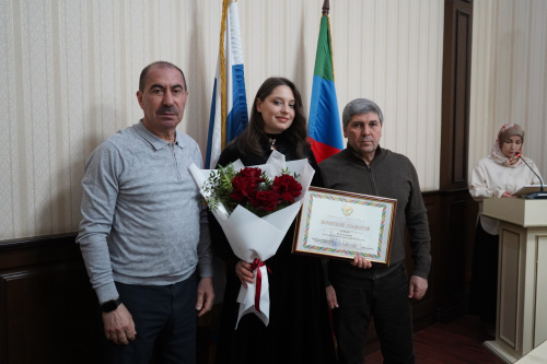 Сегодня, 10 марта, мэр Дербента Ахмед Кулиев совместно с председателем Собрания депутатов Гасаном Мирзоевым вручил Почетную грамоту председателя Правительства Республики Дагестан Даргаевой Инне Руслановне за достигнутые трудовые успехи и добросовестную работу.