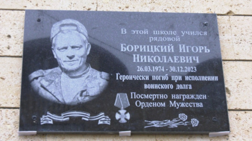 Сегодня, 19 февраля, на территории школы №15 г. Дербента состоялось открытие мемориальной доски и парты в память о рядовом Борицком Игоре Николаевиче. Он героически погиб при исполнении воинского долга в зоне специальной военной операции на Украине.